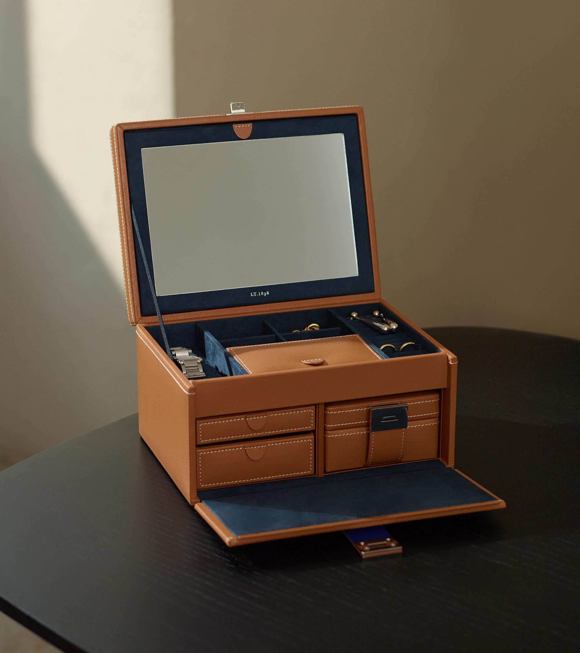 La qualité des matières, associée au bon sens et au savoir-faire historique Le Tanneur rendent durables nos créations dites « intemporelles ». C’est pourquoi nous veillons, en plus du cuir pleine fleur, à employer des matières recyclées. Nous utilisons donc des chutes de cuir pour élaborer boîtes à bijoux, ainsi que de nombreuses pièces de petite maroquinerie. Aujourd'hui, la majorité de nos boîtes à bijoux sont en cuir recyclé.