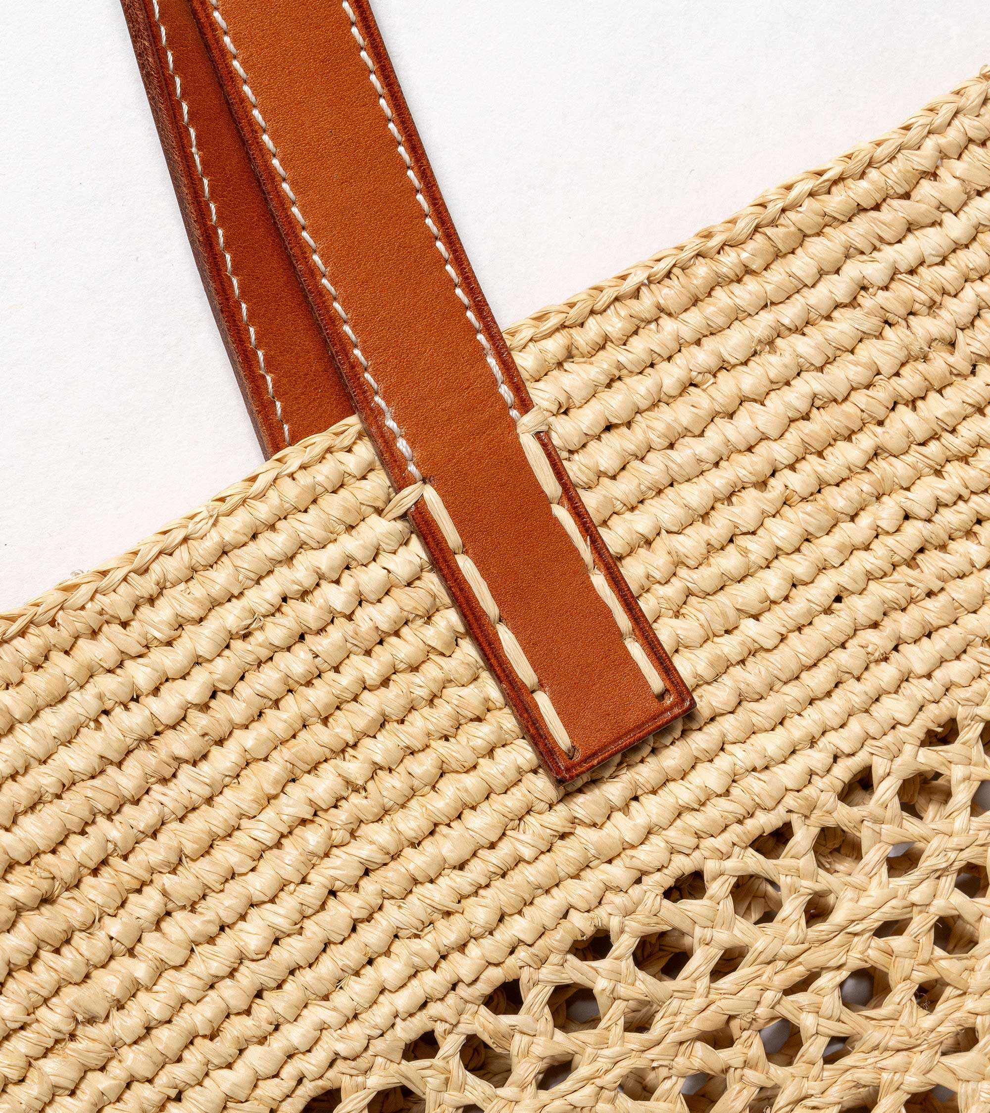Le Nattier besteht aus 100% natürlichem Raphiabast. Sie zeichnet sich durch ihre einzigartige Zusammensetzung mit zwei Flechtarten aus: der klassischen und der Streifenflechtung.