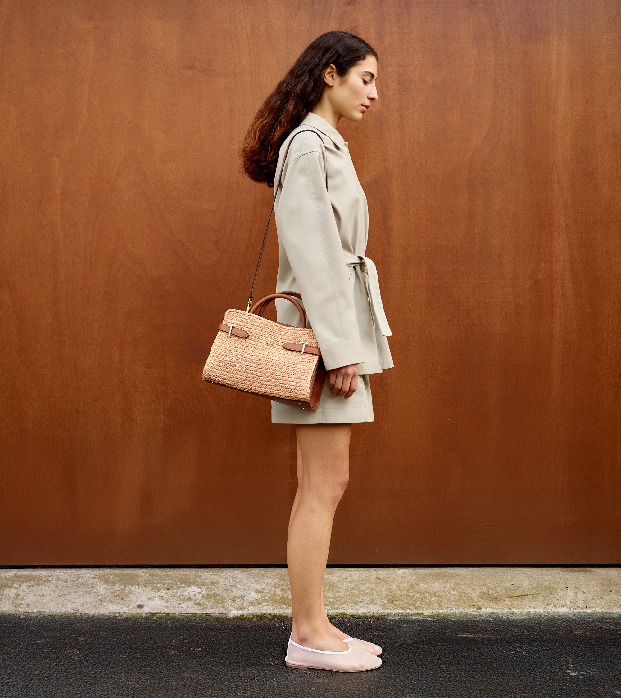 Die Camargue ist eine Region der Traditionen undi nsbesondere für ihre Flechtkunst berühmt. Hier verschmelzen die handwerklichen Gesten gerne mit der Landschaft und ihren schönen Materialien. In diesem lokalen Erbe haben wir den Raphiabast (neu) entdeckt, ein von Natur aus elegantes Material, das sich perfekt mit Leder kombinieren lässt.