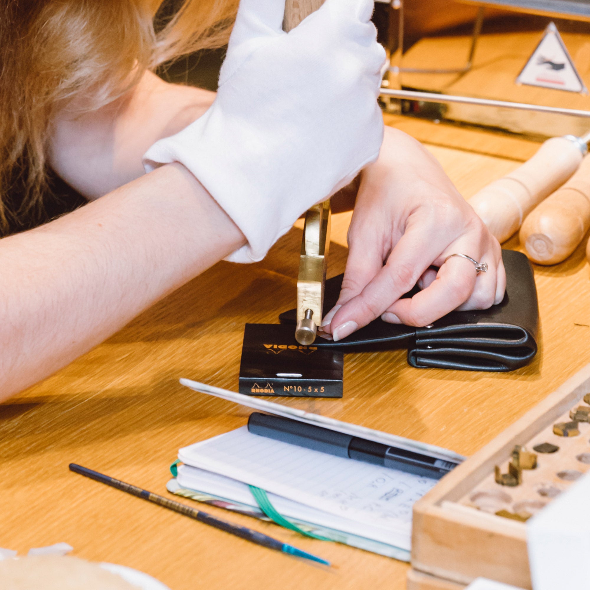 Was diesen Service so besonders macht, ist die perfekte Verbindung zwischen der Lederkunst und der Vergoldung. Unsere Lederhandwerker schaffen Stücke von unvergleichlicher Qualität, mit edlen Materialien und makellosen Verarbeitungen. Hinzu kommt die Arbeit unserer Vergolderkünstlerin, die mit ihrer kreativen Herangehensweise und ihrer Liebe zur Schönheit ein einfaches Accessoire in ein personalisiertes Kunstwerk verwandelt.