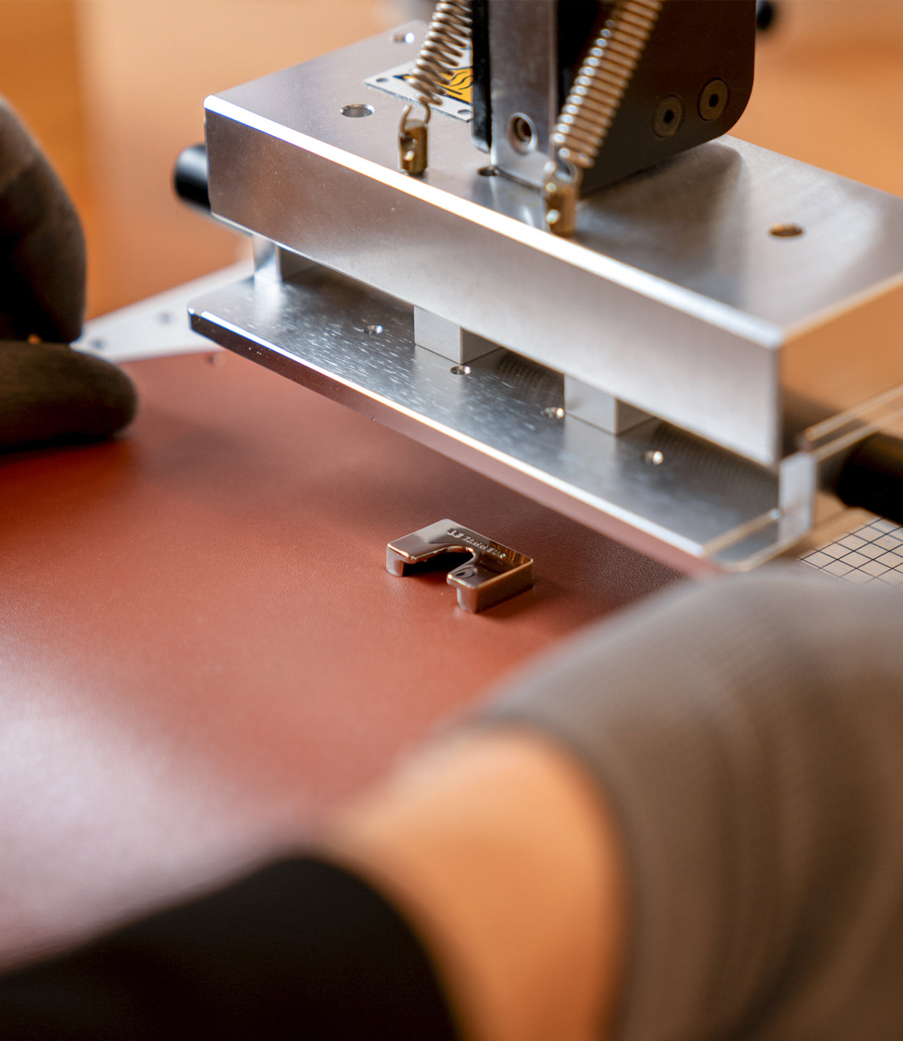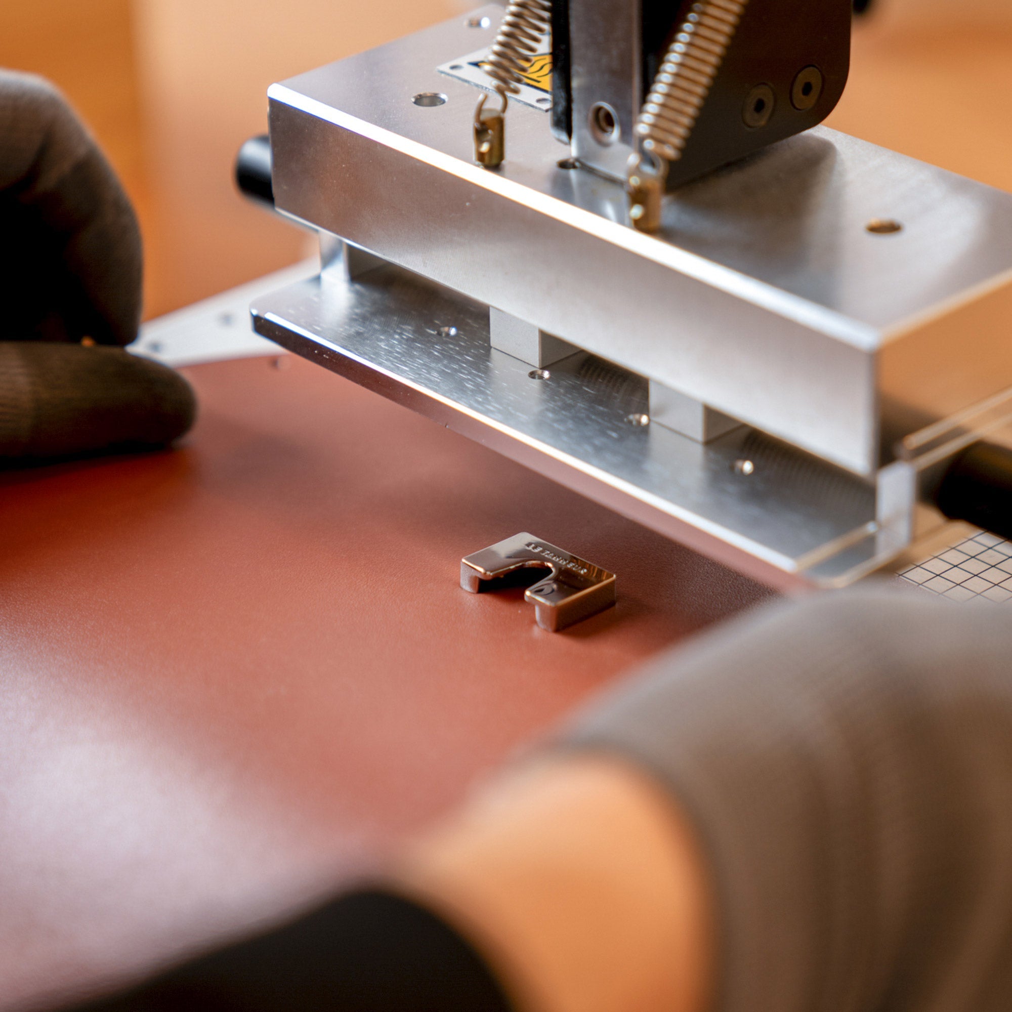 Die Personalisierung bei Le Tanneur zeichnet sich durch eine kreative und raffinierte Technik aus: die Vergoldung mit Blattgold. Unsere Vergolderkünstlerin, eine wahre Expertin dieser alten Kunst, verwendet ein heißes Eisen, um Motive, Initialen oder Nachrichten direkt auf das Leder zu applizieren. Dank des Drucks, der durch das heiße Eisen ausgeübt wird, fixiert sich das Gold dauerhaft auf der Lederoberfläche und erzeugt so einen glänzenden und luxuriösen Effekt, der jedem Stück einen einzigartigen Charakter verleiht.