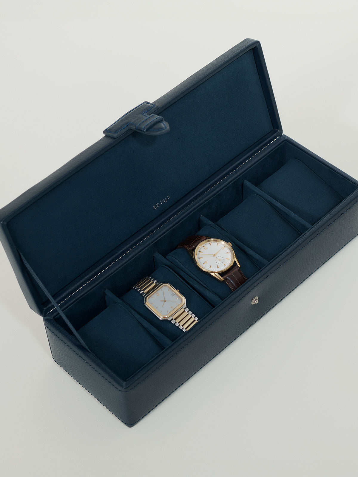 Le Tanneur uses recycled materials with full-grain leather for durable pieces. Leather scraps are repurposed for watch and jewelry boxes, mostly made from recycled leather. All packaging is made from recycled and recyclable materials, using FSC and PEFC certified paper and solvent-free vegetable-based inks, ensuring sustainability.
