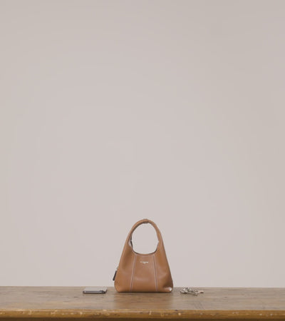 Mini handbag with zipped pocket and Le Tanneur branding. Carried by hand, on the shoulder or across the body with its adjustable and detachable shoulder strap.